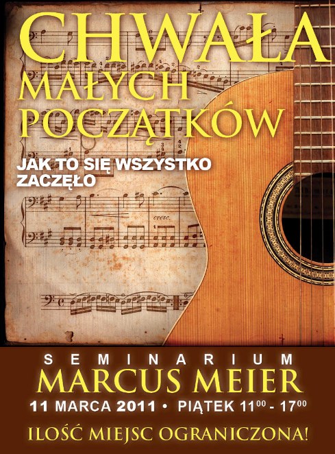 | Marcus Meier - jeden z głównych liderów uwielbienia z domu modlitwy w IHOP gdzie uwielbienie i modlitwa trwa nieprzerwanie 24/7 od 1999 roku. Od samego początku służy w IHOP jako lider uwielbienie, szkoląc i prowadząc seminaria i konferencję o tematyce proroczego uwielbienia, które wypływa z intymnego obcowania z Panem. | |